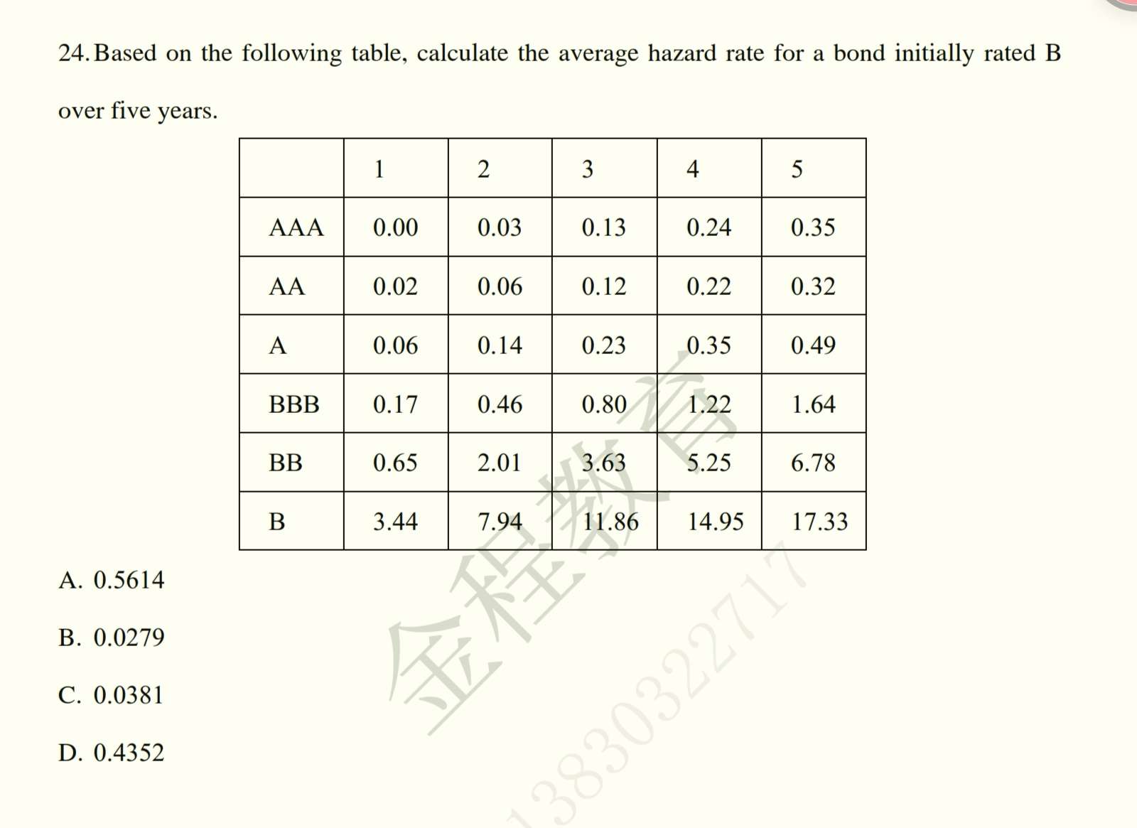 这道题怎么做,怎么分析表格,完全没有思路,表里是什么,违约概率的话不可能大于1吧