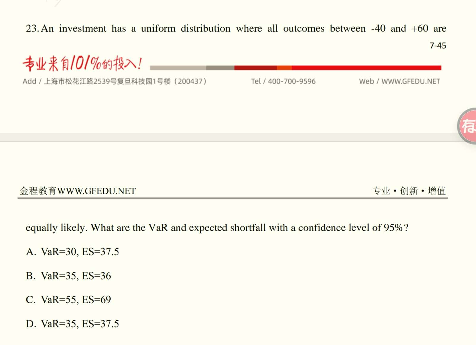 B选项里为什么说包括了VAR本身就不对呢?单个点的概率不是0吗,包不包括VAR点应该对ES的大小没有影响啊