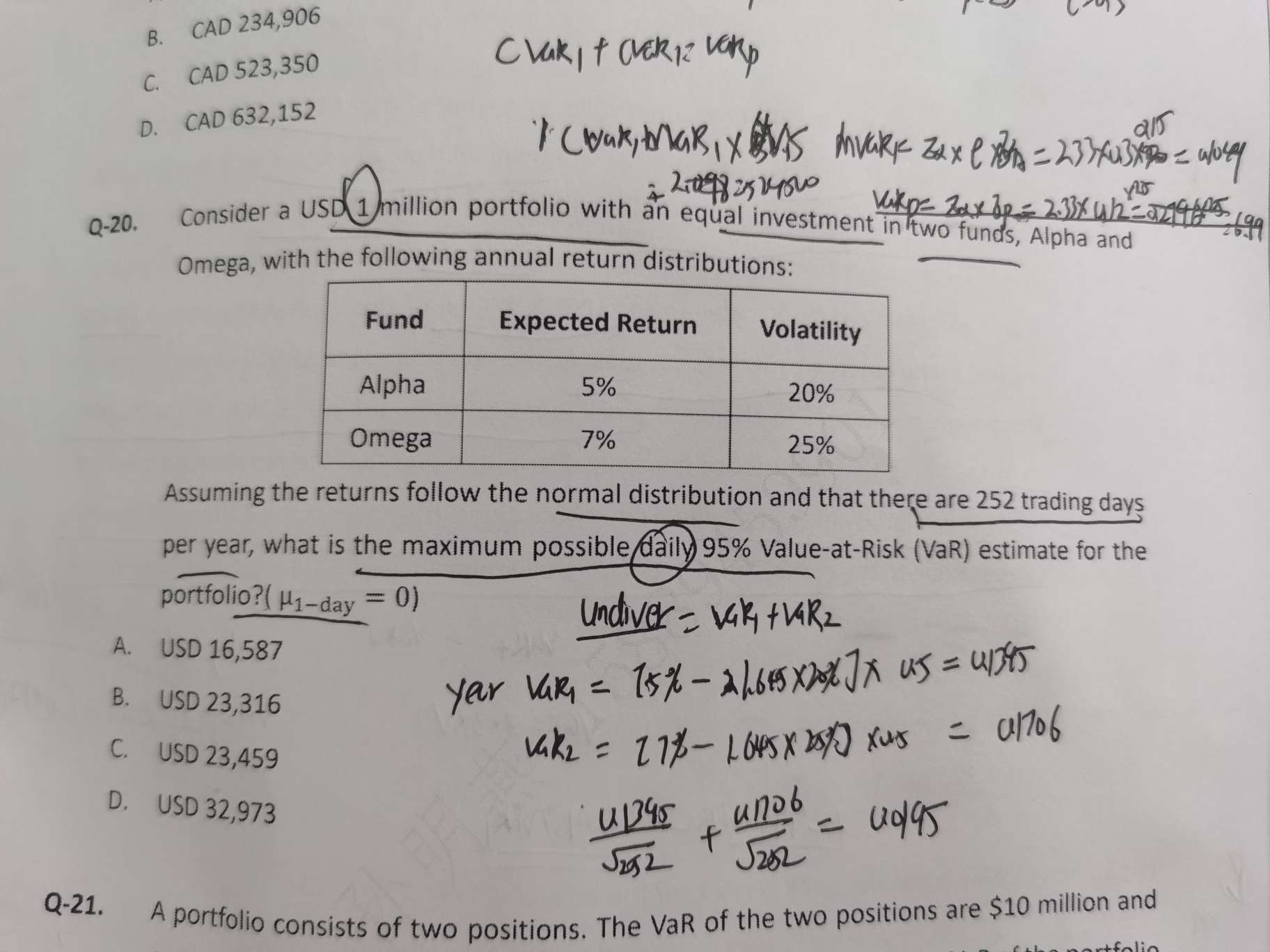 第20题如果是直接2个的VAR和就是最大,是没有分散的,为啥先算最大的方差反而结果不一样了?