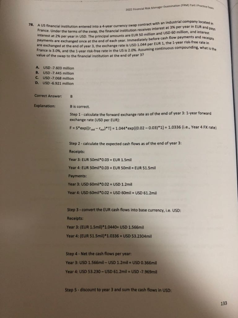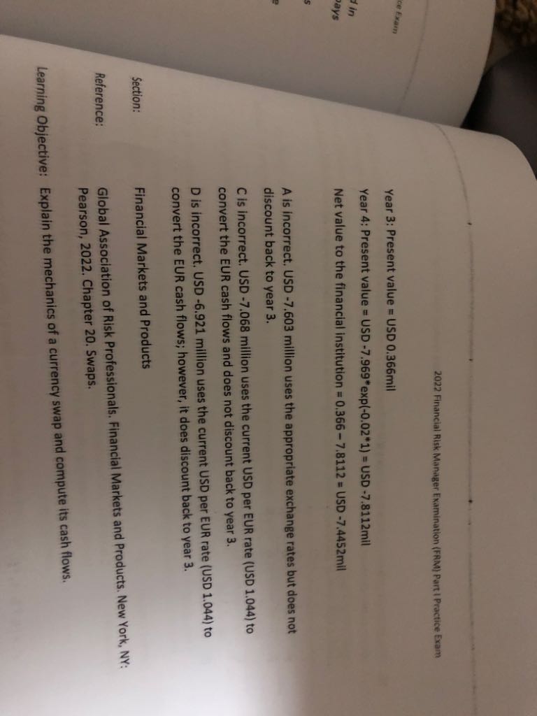 老师这道题的答案实在太让人迷惑了,我第一次碰到四年期互换求第三年互换价值的题,请老师详细解答一下这道题的解题思路,谢谢!