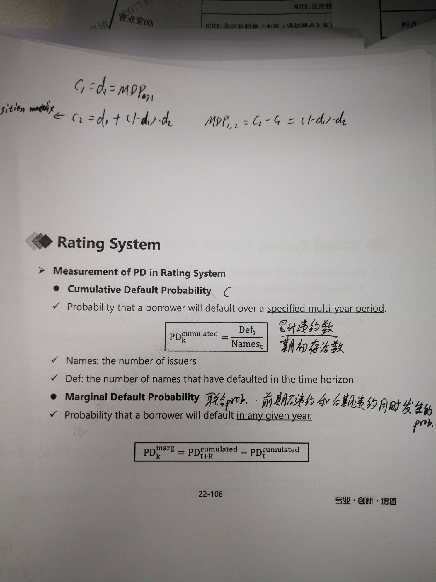 请问老师,怎么理解MPD是联合概率,按照MPD(1,2)=(1-d1)d2,而按照联合概率的定义是前期不违约和后期违约同时发生的概率MPD(1,2)=(1-d1)+C2?