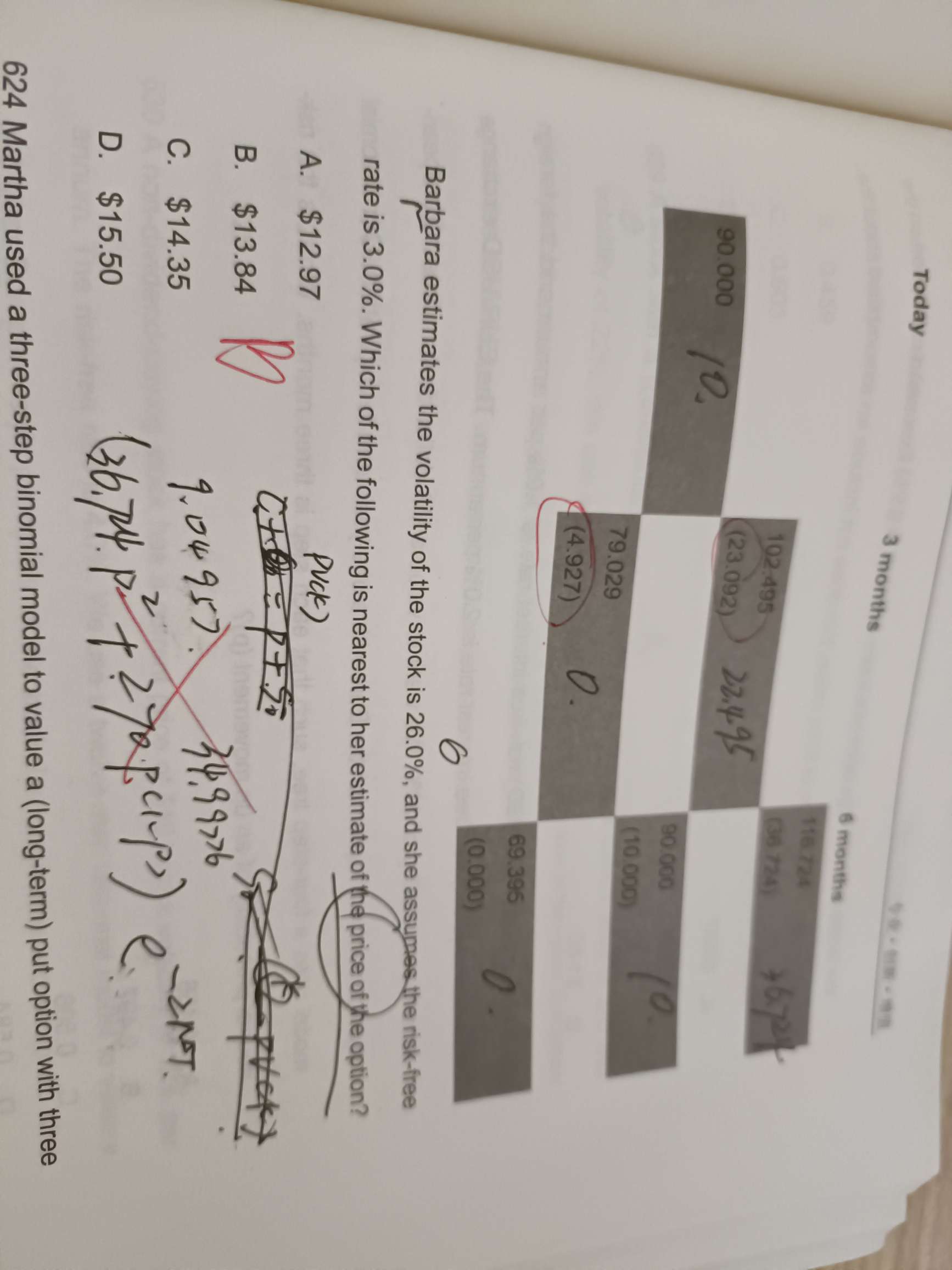 老师好!第三个月框框下面的数字是什么意思啊?为什么要用这个数据?如果减90,这也不是期权的价格呀。