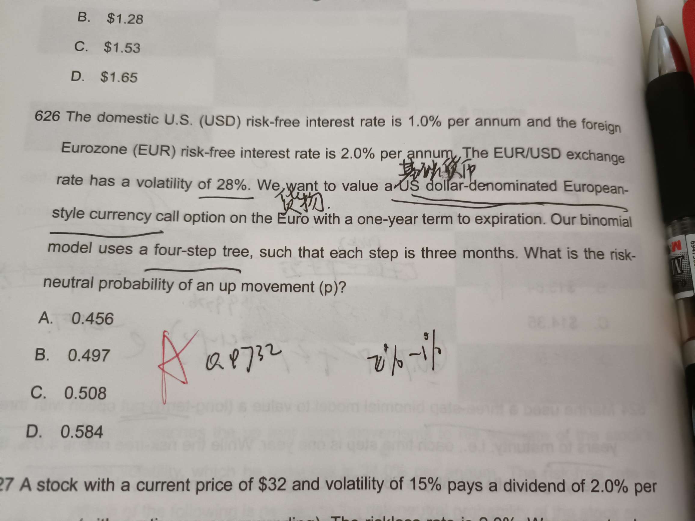 老师,这道题我是这么理解的,美元相当于基础货币,欧元相当于货物。而货物在市场上的升值就当于市场利率基础货币在市场上的升值则相当于分红,所以我算的是2%-1%。???
