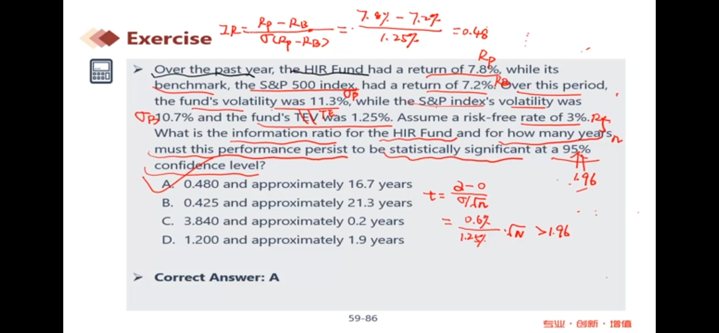 t检验计算中,分母的标准差为什么用1.25%?题目中不是说标准差是11.3%吗?1.25%是TE,表示的是标准误吧,应该是标准差除以根号N的概念。