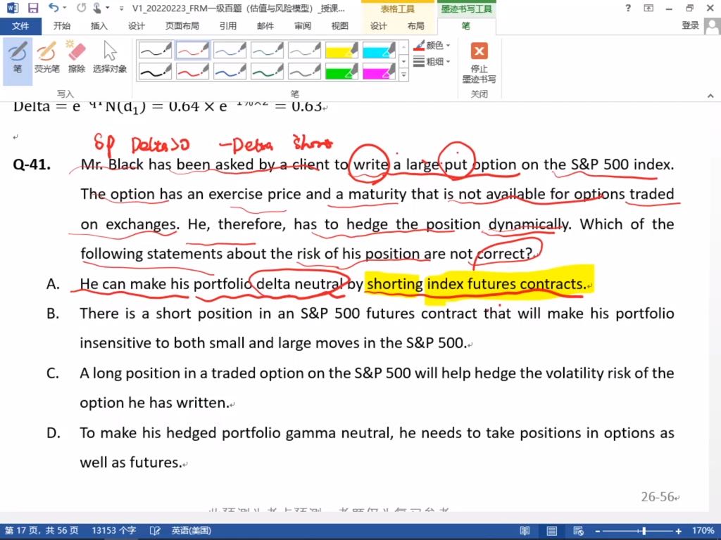 他现在是 卖出头寸,对冲delta不应该买入吗?