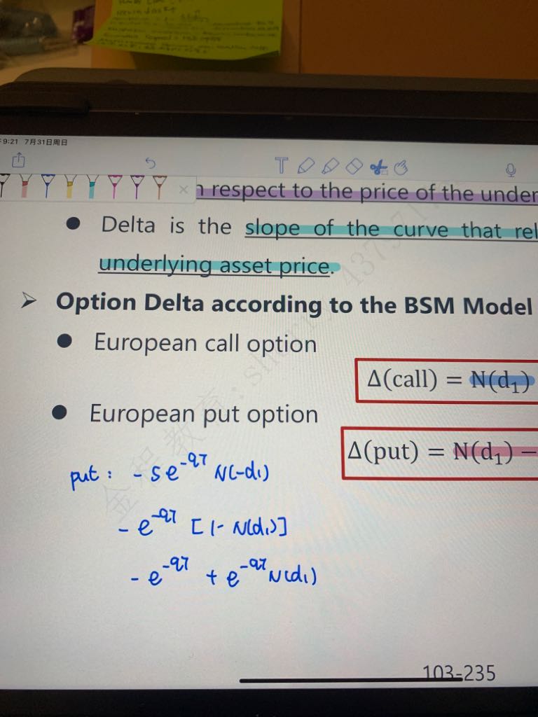 如果标的资产有收益的话蓝色字写的有标的资产有分红的put的delta对吗