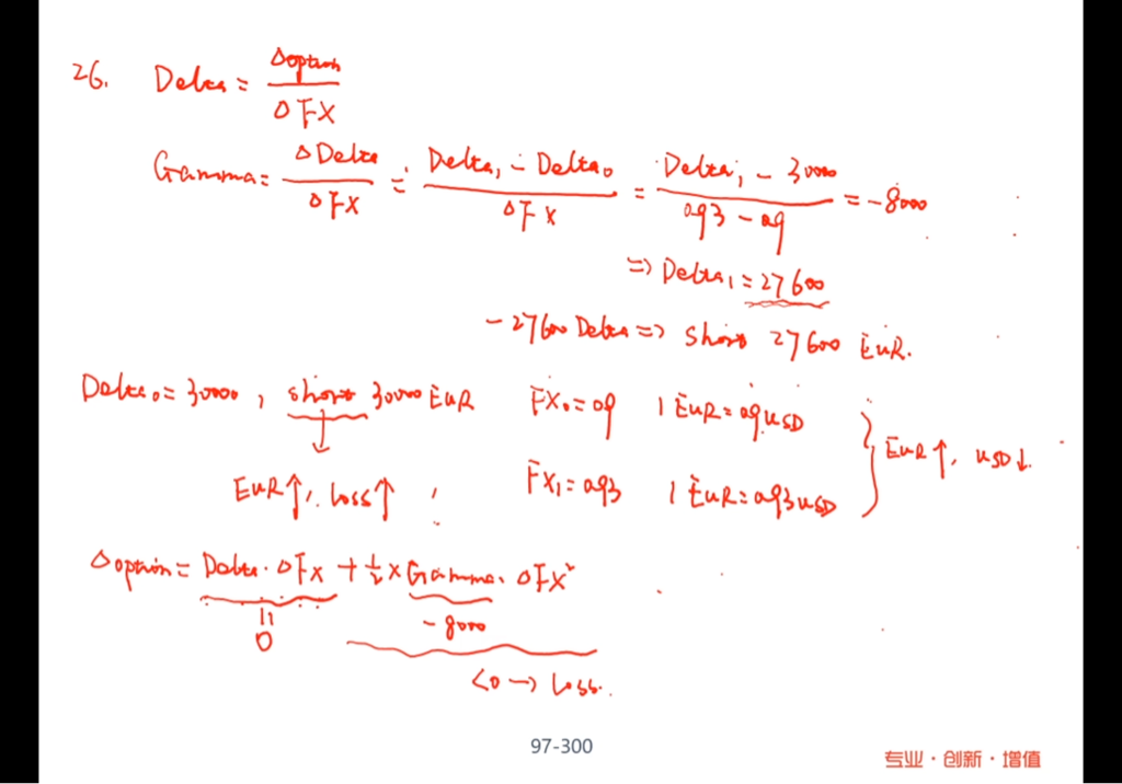 为什么delta=30000就是short 欧元?欧元是资产的话应该是long?