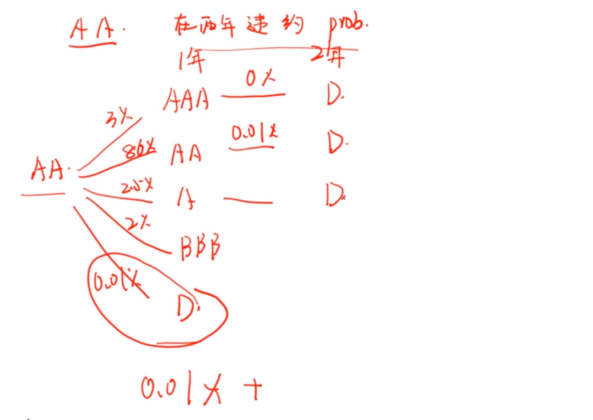 为啥第一年违约的概率是0.01%啊,就是最下面那个单独加上的0.01%,表格里怎么看的呢