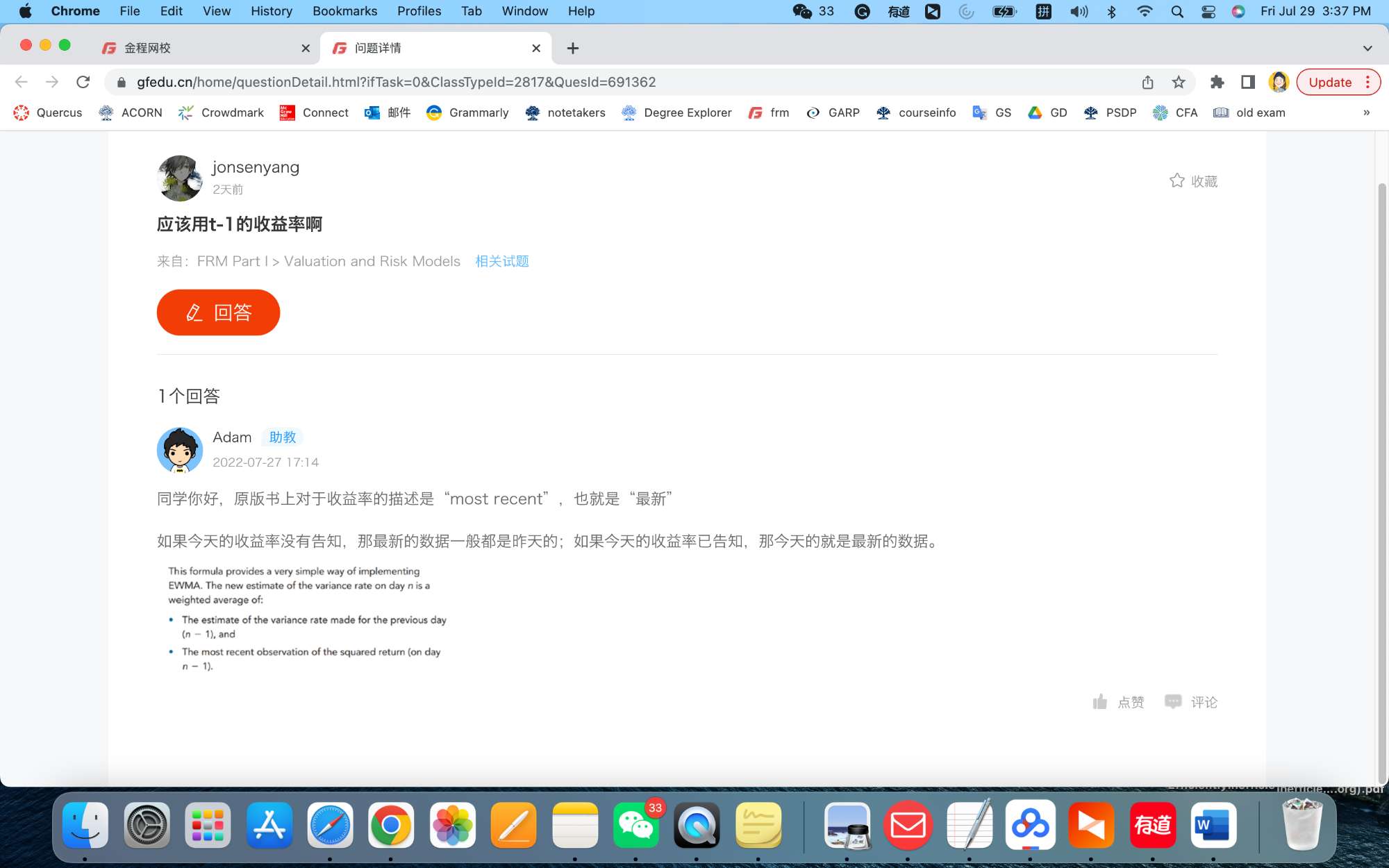 FRM问答包含在线课程、FMR通关课程、FRM试题等所有FRM相关问题,每个问题老师均会在24小时内给出答疑回复哦!