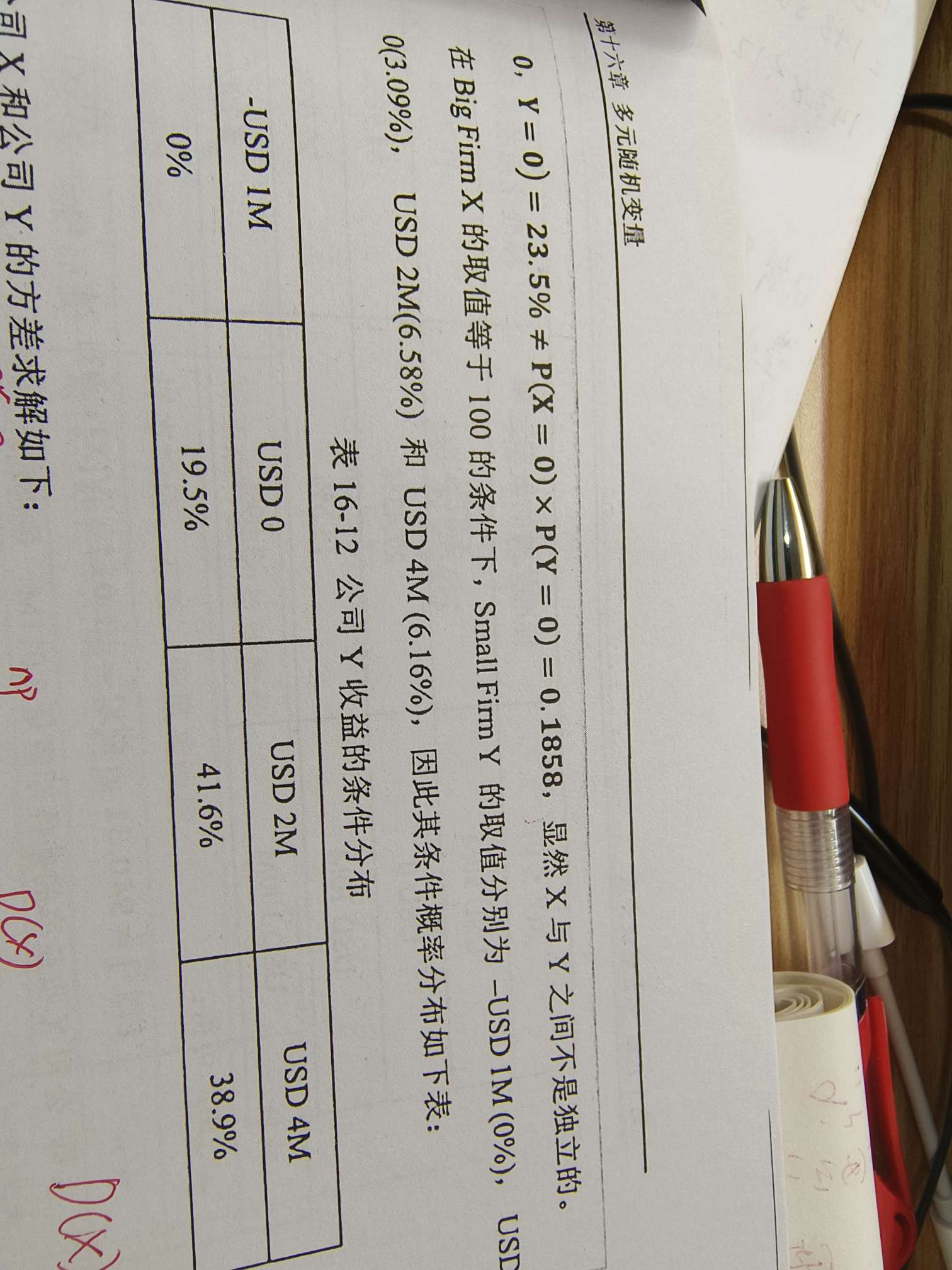 bigfirmX的USD100M=15.83%,以下四个条件分布概率如何求得