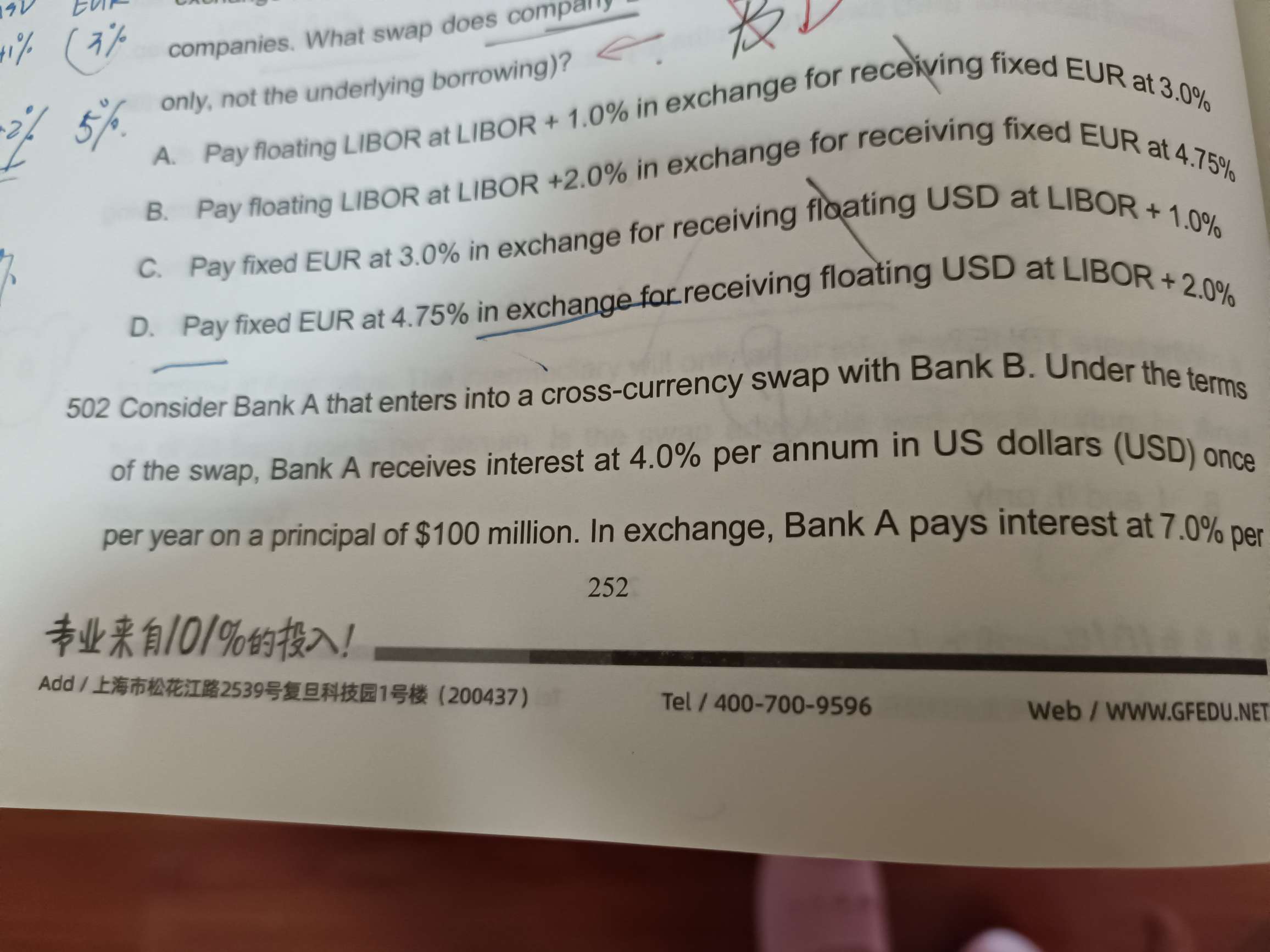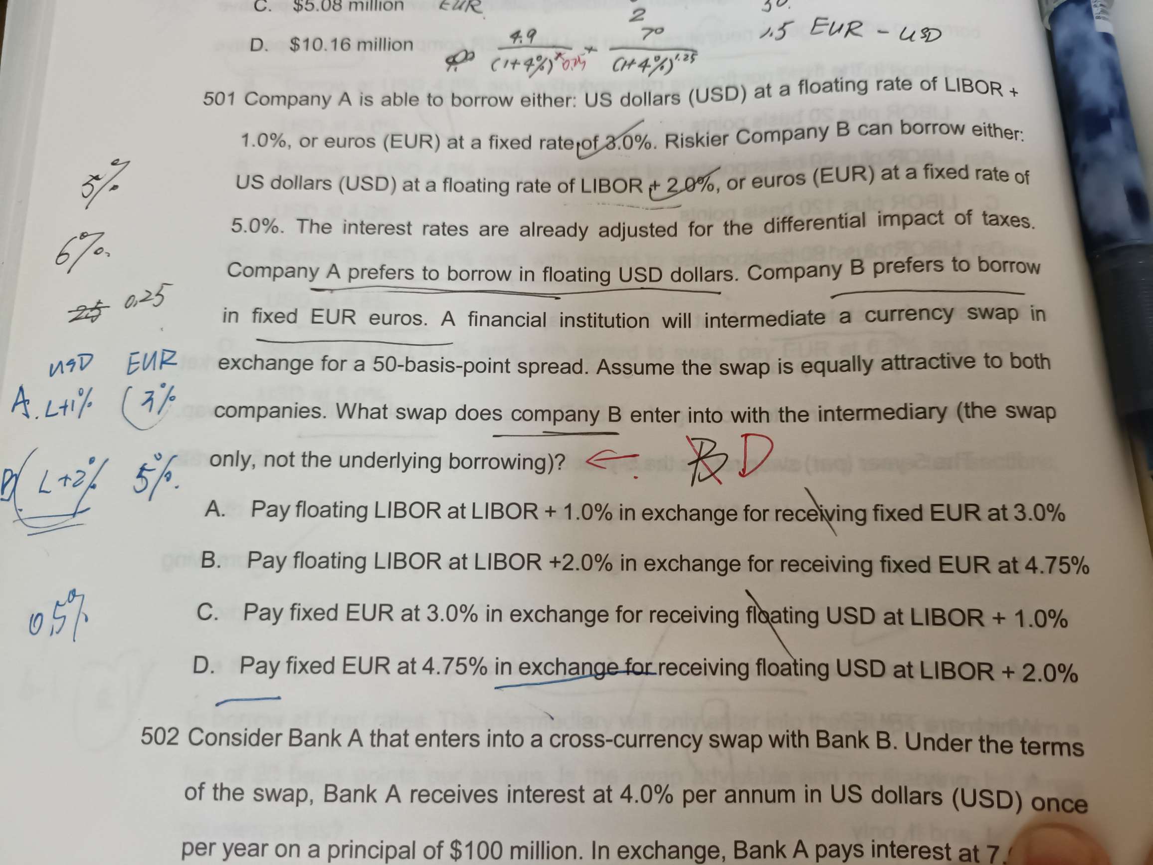 老师好,这道题我跟答案写的顺序完全相反。B公司在借USD上有相对优势, 不应该是由b来借浮动吗?