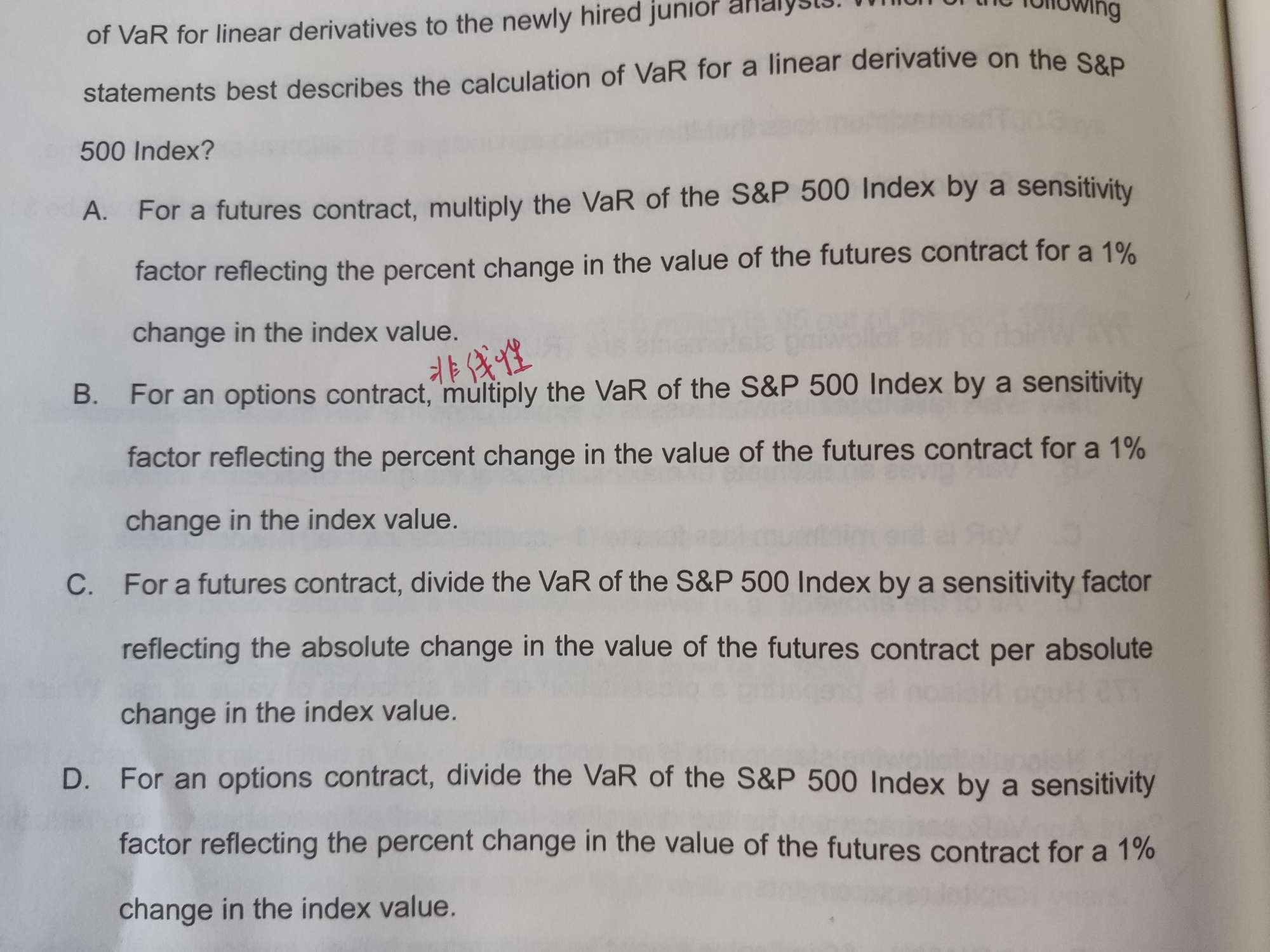 这道题的B选项,option的var值不是也有一样的公式吗,不能这样描述嘛