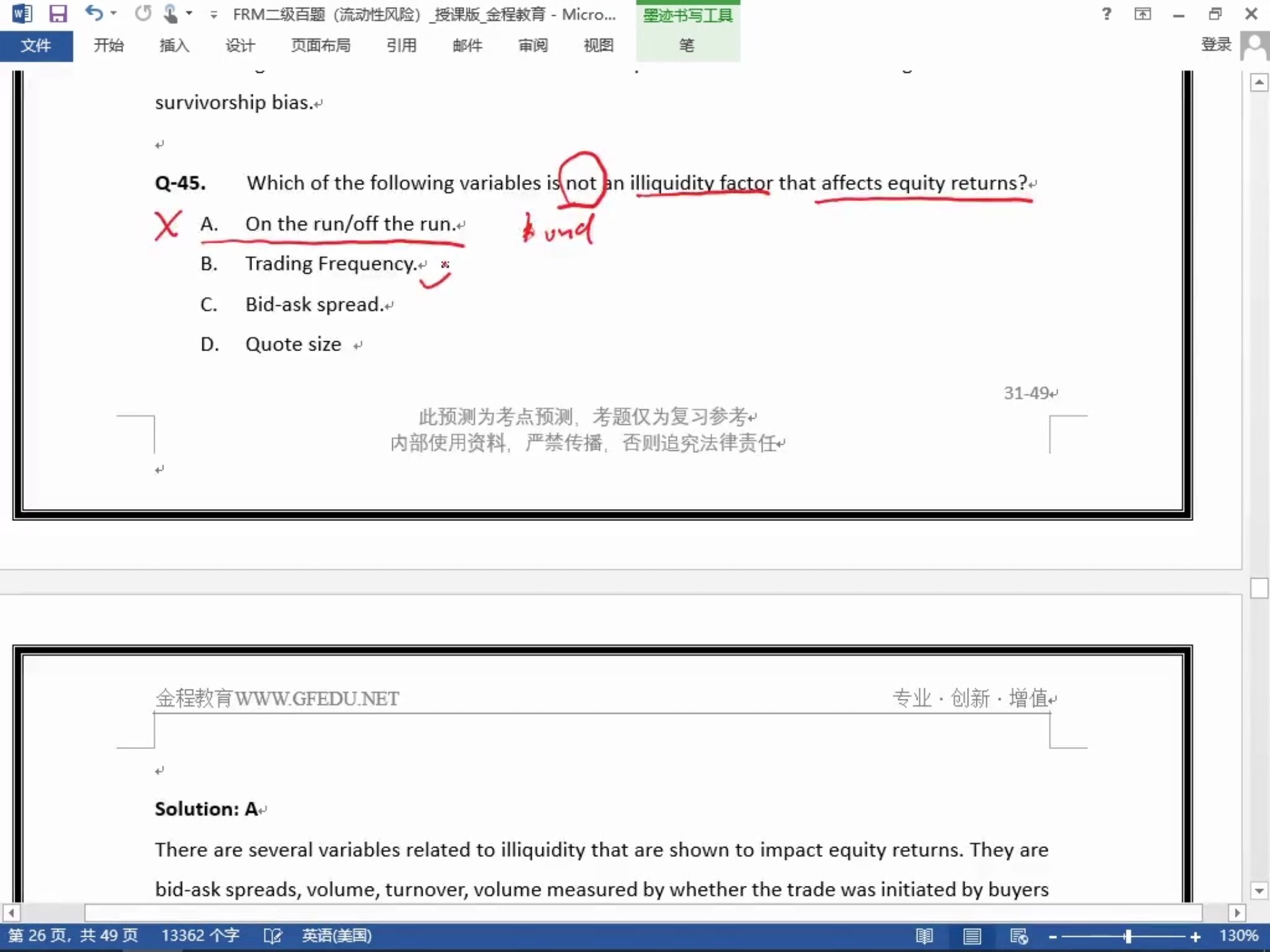 题目45,题干问的是哪项不是影响股票收益的非流动性因素吗?