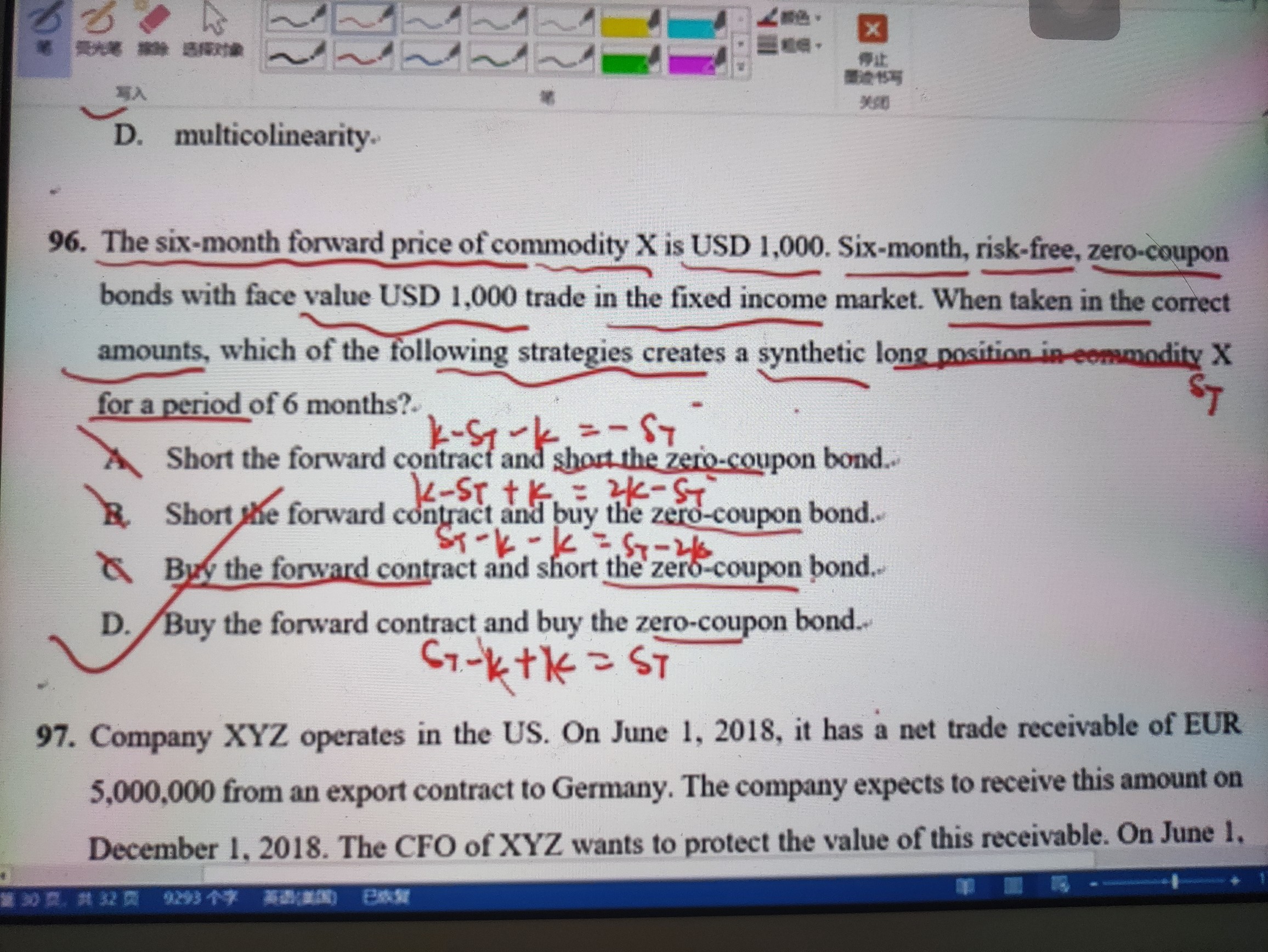老师,这里short一个零息债券为什么是-k呢?他们之间有什么关系?