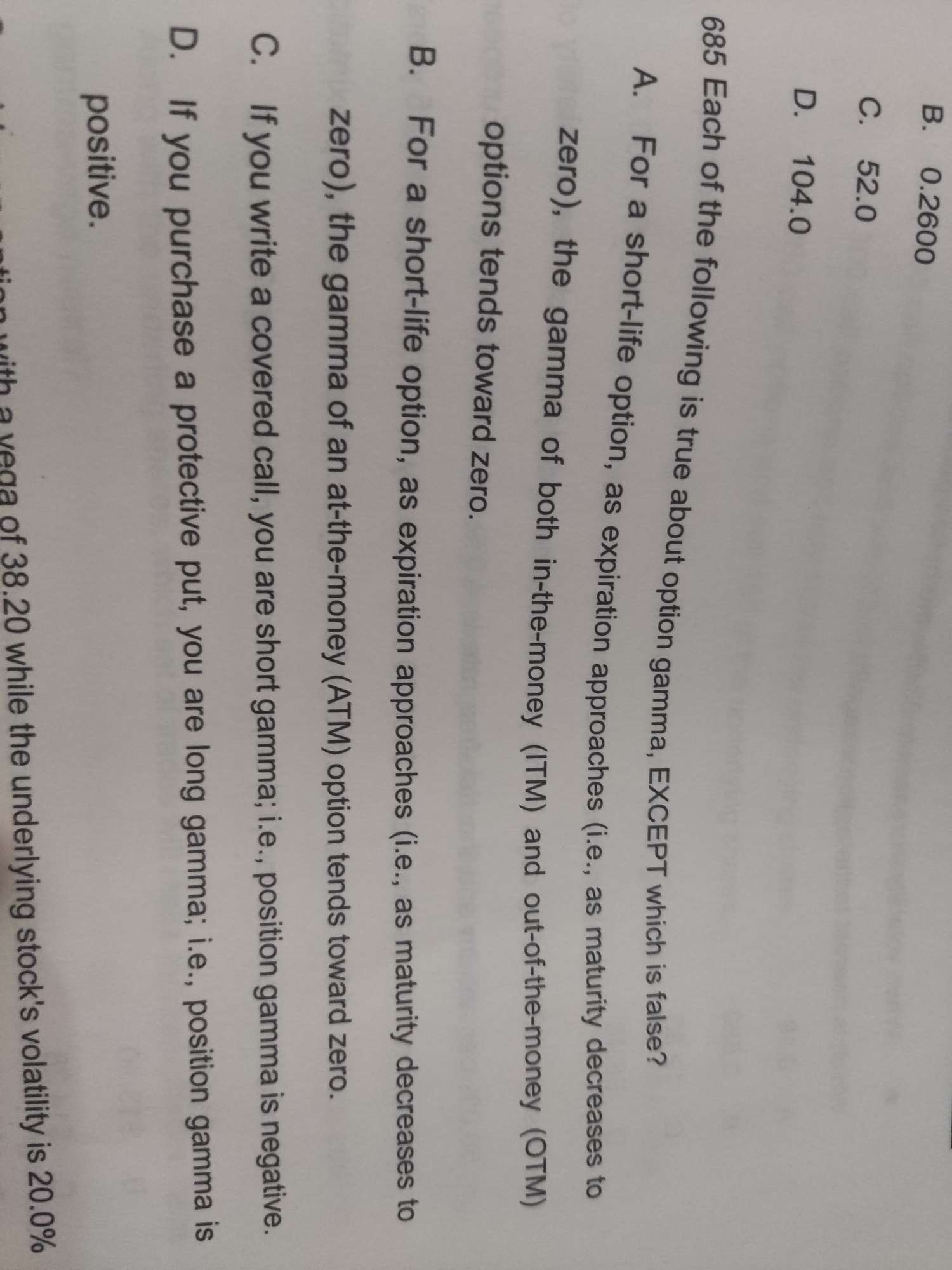 老师,这道题的c选项没错吗,covered call是卖一个看涨,如果write covered call不就相当买了一个看涨吗,那gamma不是正数吗