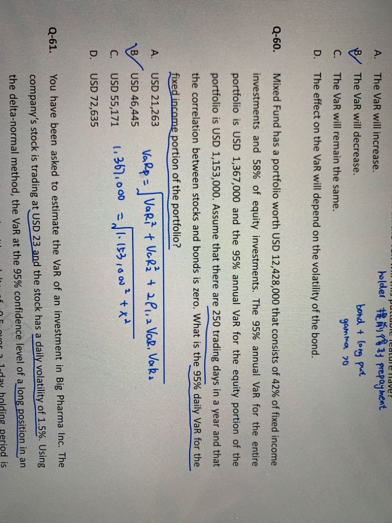 为什么这个题不用带上权重,VAR用在组合计算时都不带权重吗