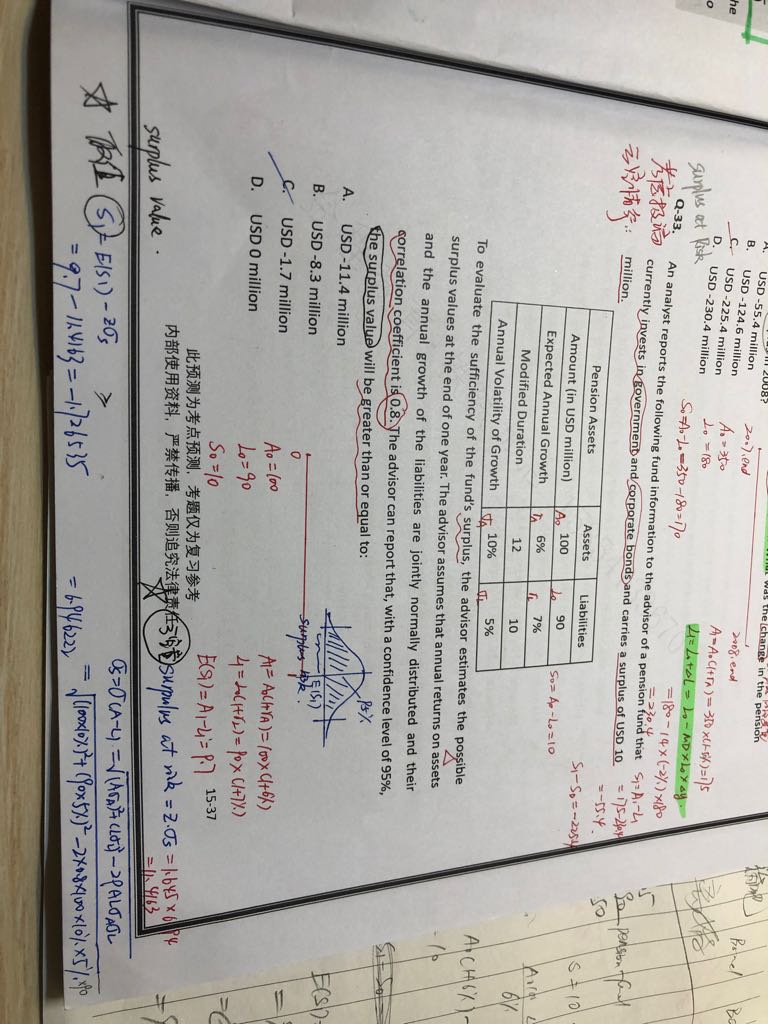 老师 这个计算surplus at risk的时候就是那个surplus标准差公式中资产A和负债L带入那个根号公式是0时刻A。即100还是1时刻A1