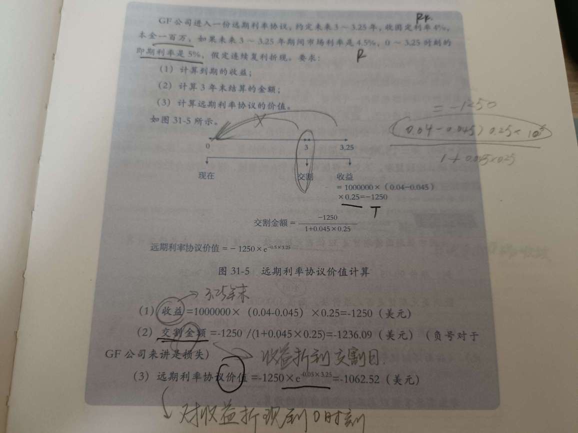 老师好,请问这道题里面第二小问的交割金额到底是什么东西?以及为什么是把收益折现到交割日,看公式其计算也是根据不是连续的复利来算的 为什么啊?