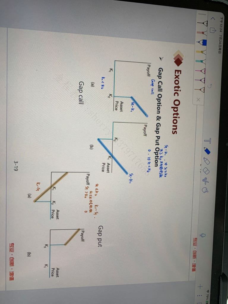 请问如果题目说gap一定会存在负的payoff,这样是不是错的,因为感觉这个gap call可以在触发行权后不马上行权,等到有正的payoff是在行权可以吗