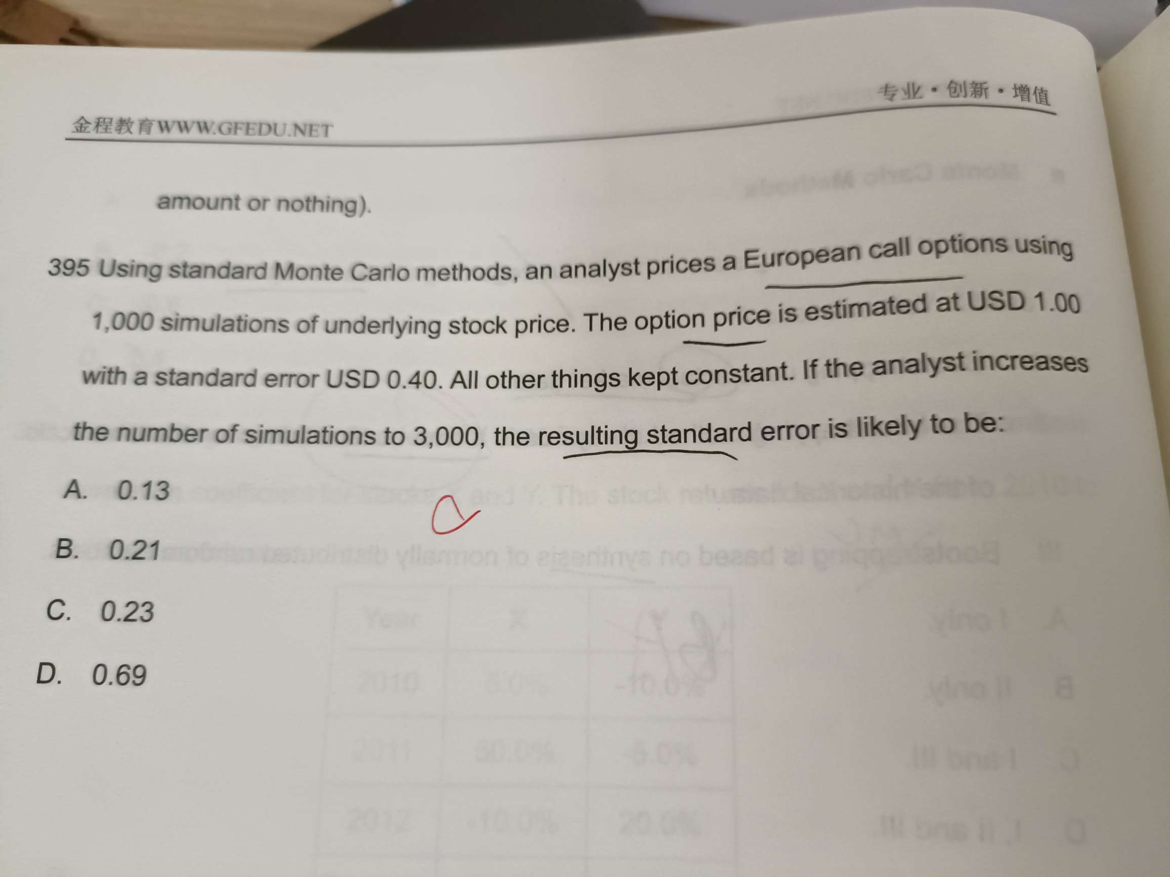 老师这一题我的u和d没有保留按原数值带进去算的算出来就是B选项啊