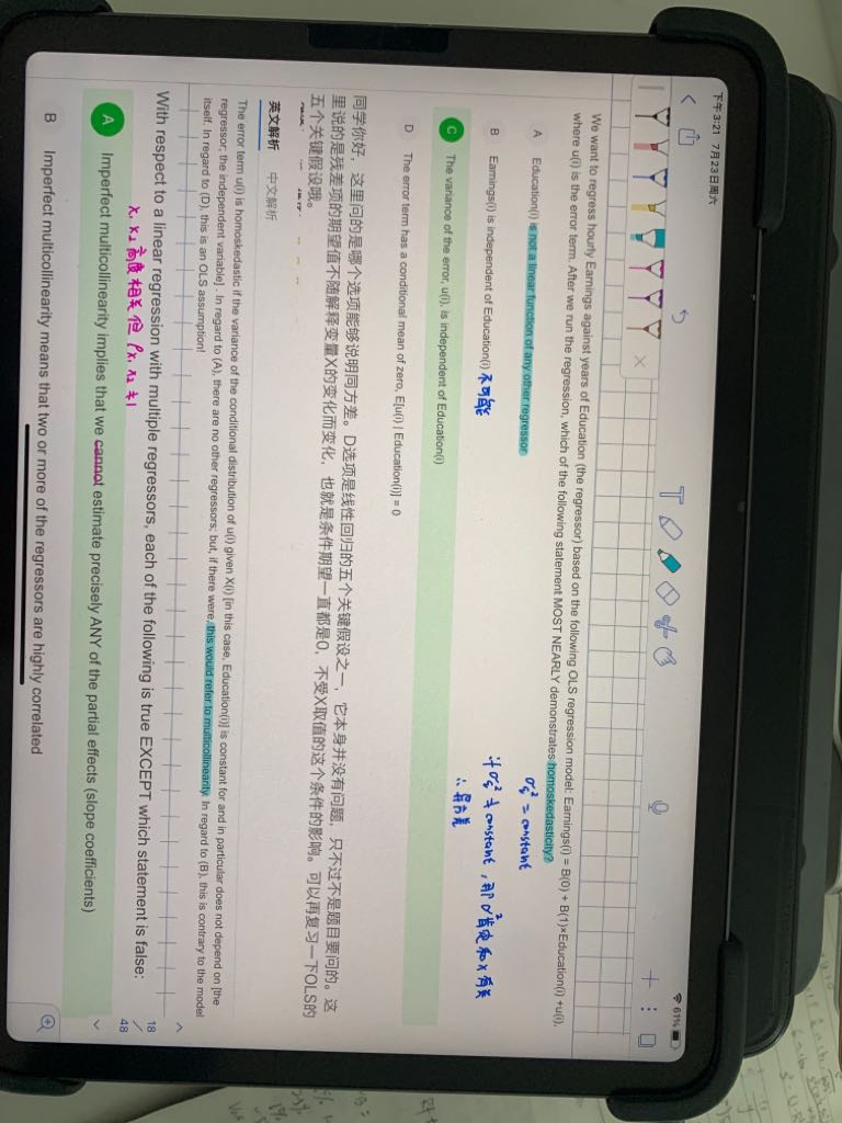 老师这里蓝色的画线句子 应该要把not去掉才是多重共线性吧