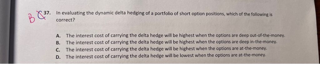 这道题是不是可以这么理解,就在atm的时候,gamma最大,所以delta来回波动大,来回买卖对冲就花费的多了呢?为啥c不对呢?