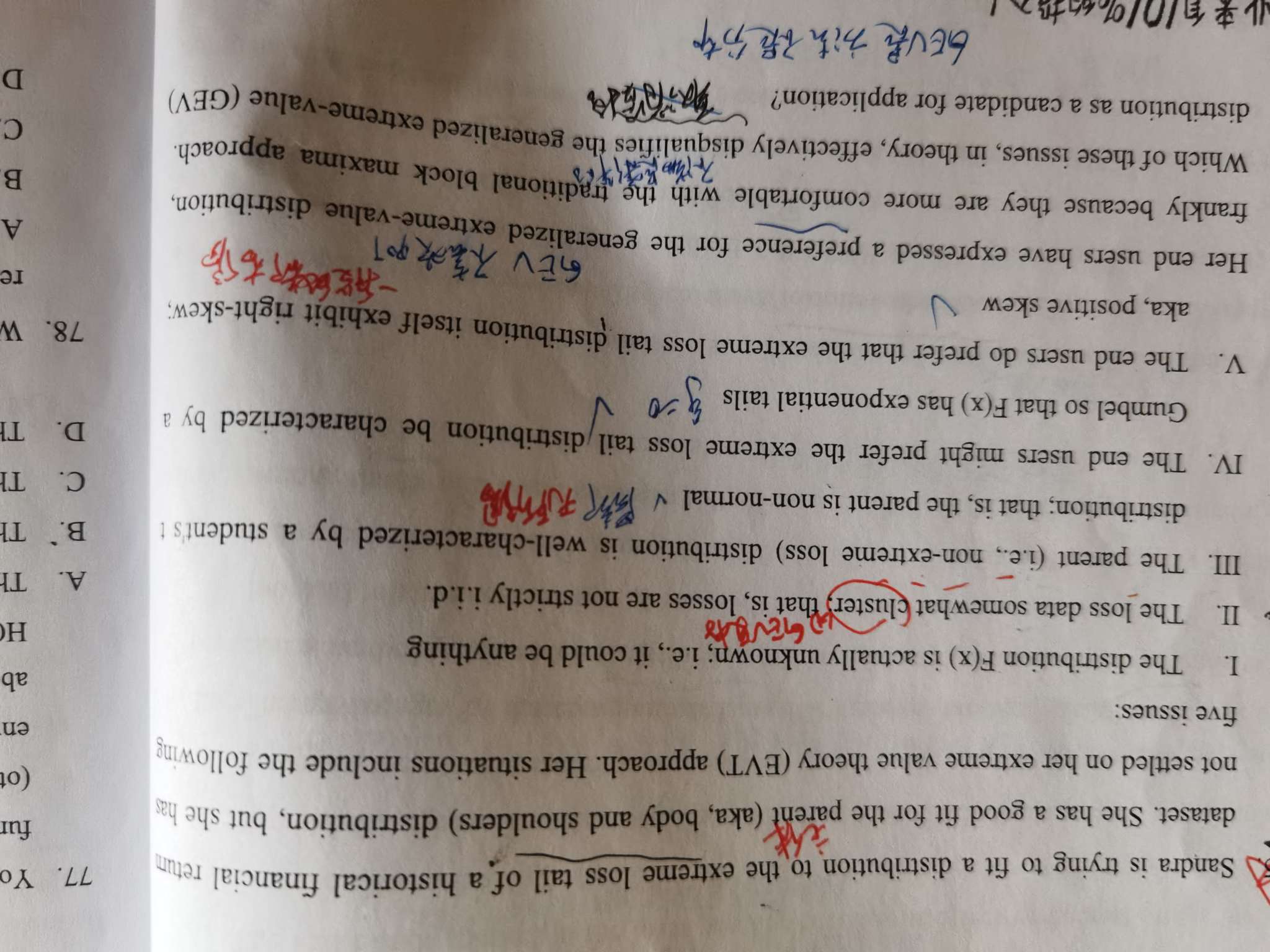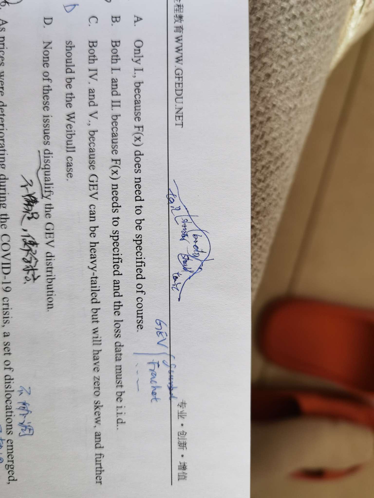 GEV需要分布是iid吗第二个选项,还有第四个选项exponential tail 啥意思。还有第五个选项右偏是啥意思。