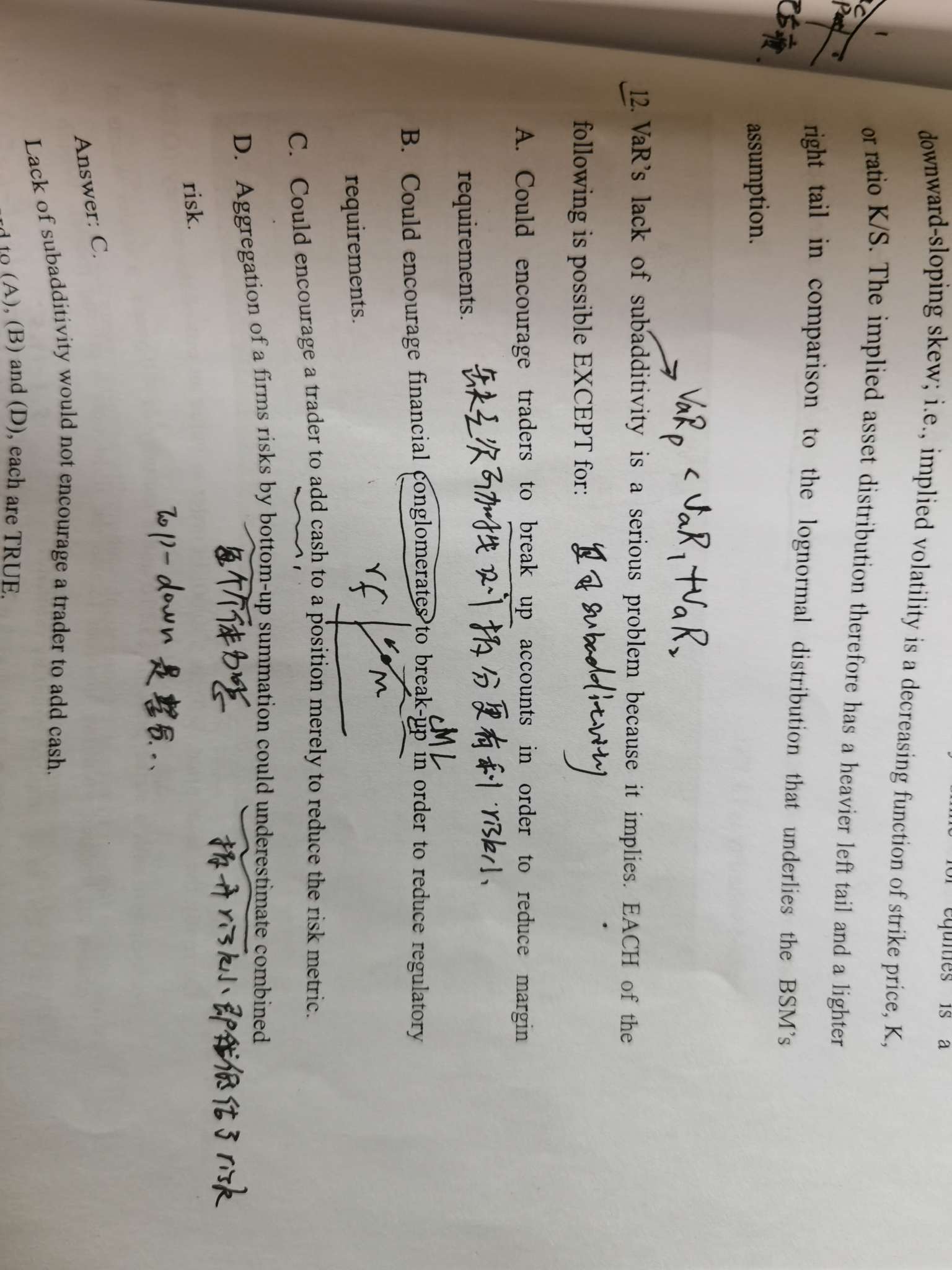 每个选项解释一下吧。d选项中bottom up 每个拆开,加总是不是应该高估了风险了?