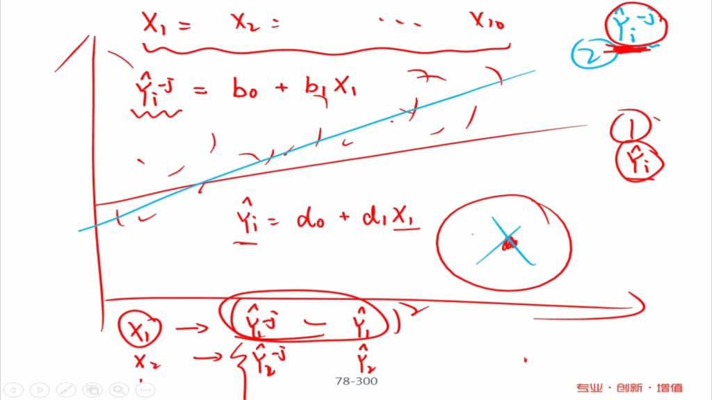 这里的x1到x10都是带进y=b0+b1x1和y=d0+d1x1方程里吗?就是说x1和x10是方程里变量x1的取值?
