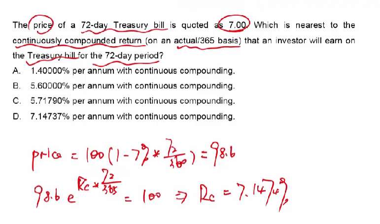 请问为什么在计算短期国库券算折现利率时不用连续复利