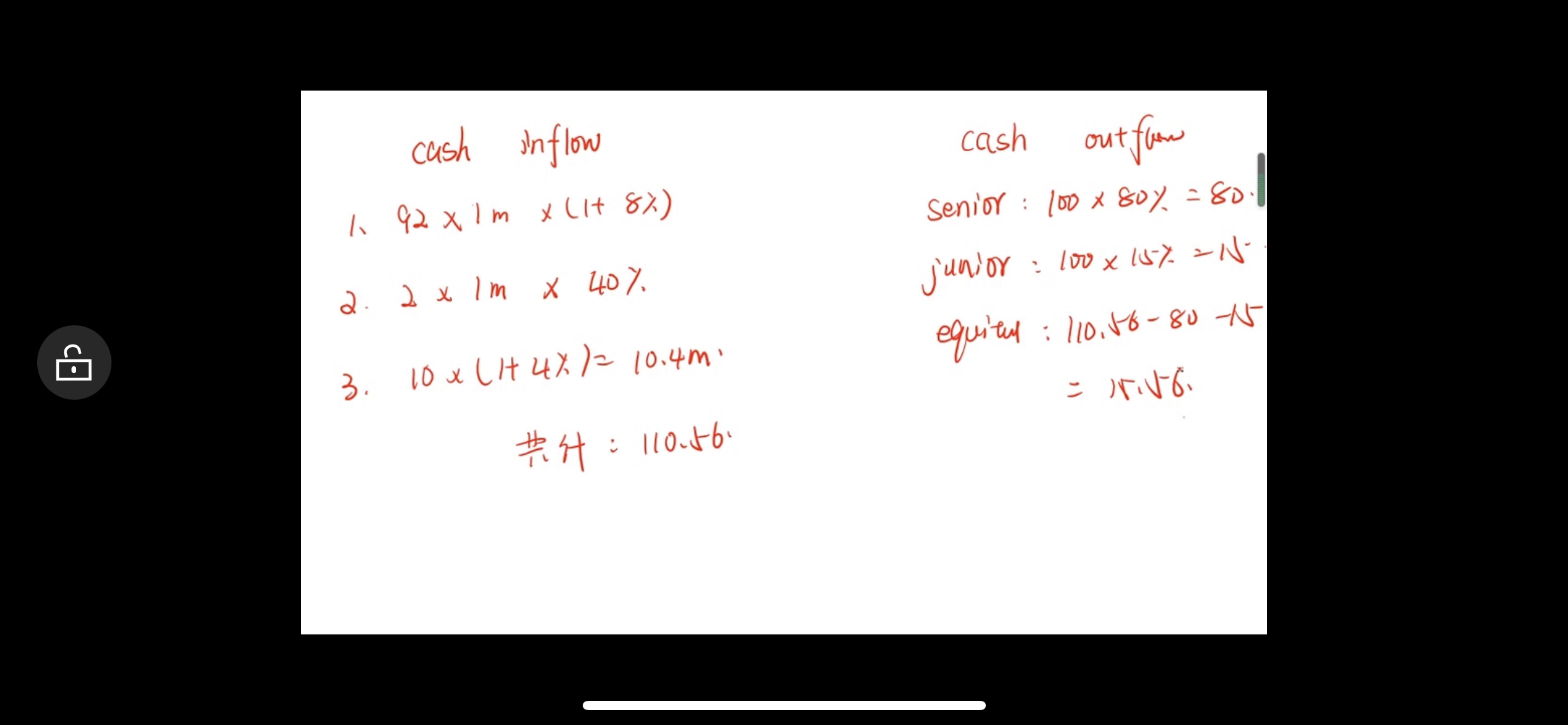第24题,期末现金流分配时,为什么senior 和mezzanine只考虑本金?不是还有最后一期的利息收入吗?