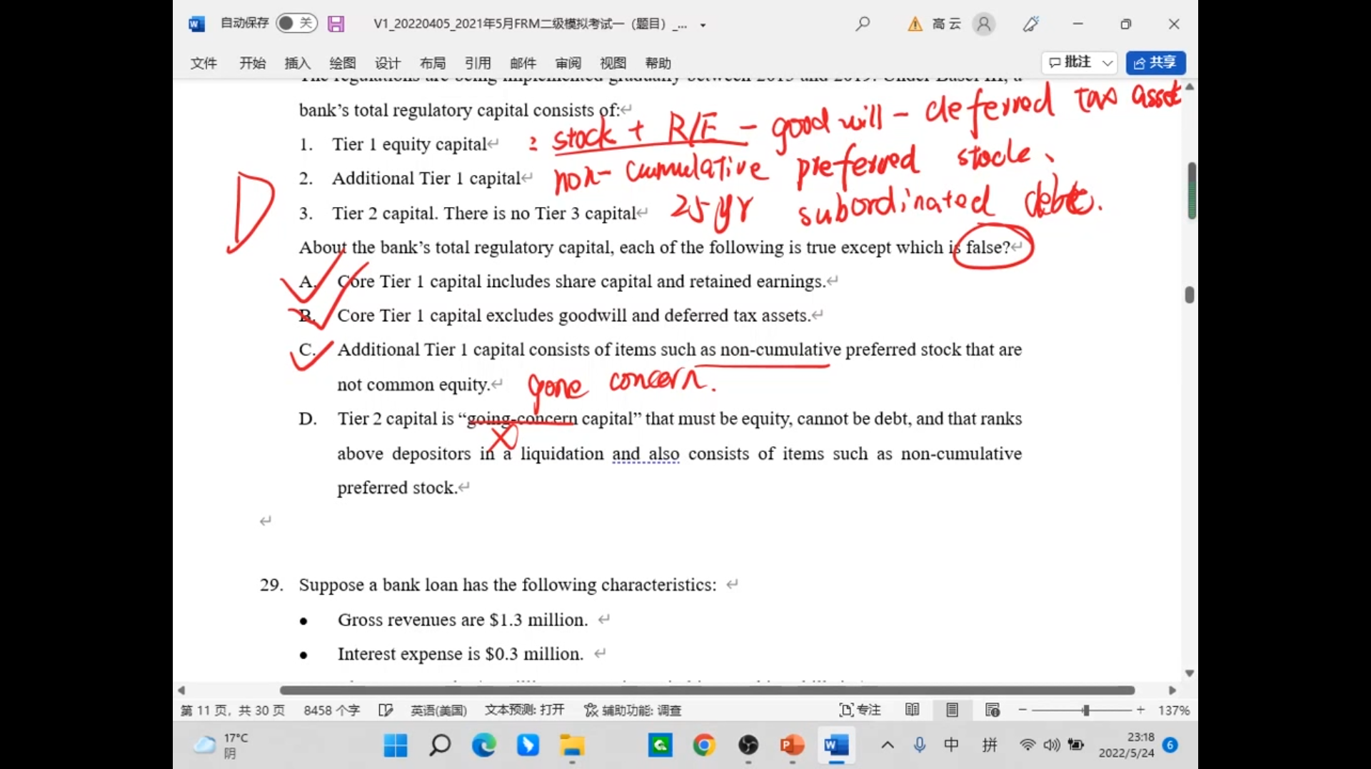老师,选项D老师说二级资本是gone concern capital 这个英文是什么意思呢?