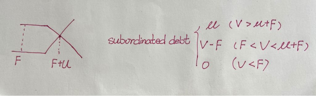 老师好,我想问问莫顿模型中次级债为什么是long call +short call,我自己没有推出图上那个分段函数?