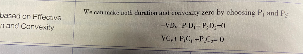 老师,这个在核心考点精要上面看到的久期凸性对冲公式,我有点不明白他们的符号。对冲的本质不就是把原本的久期和凸性变为0吗,可是这两个公式,第一个原本是读的久期,为什么后面是减p1D1减p2D2?