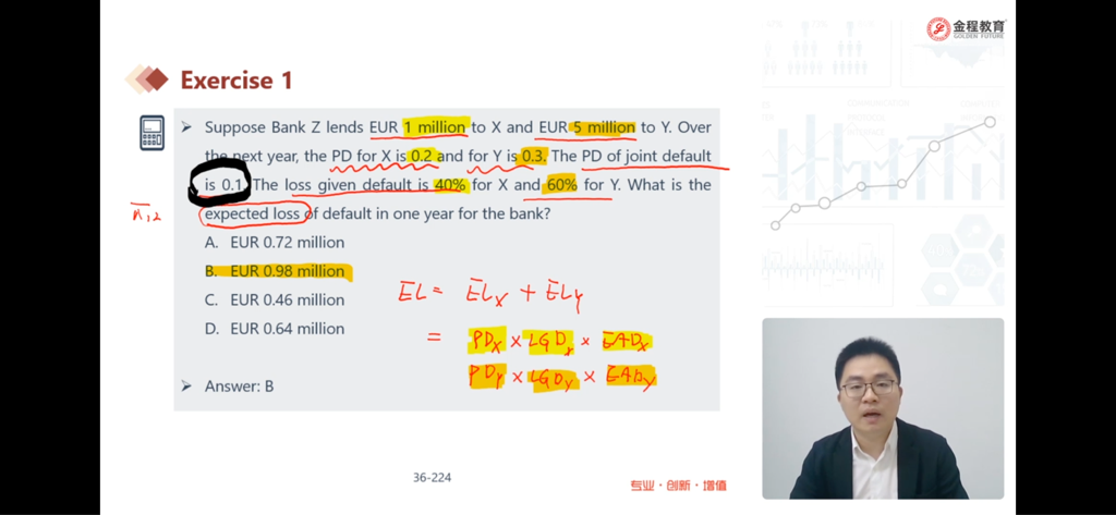 最后一道例题讲错了。X、Y不是独立的,共同违约概率0.1是有用的