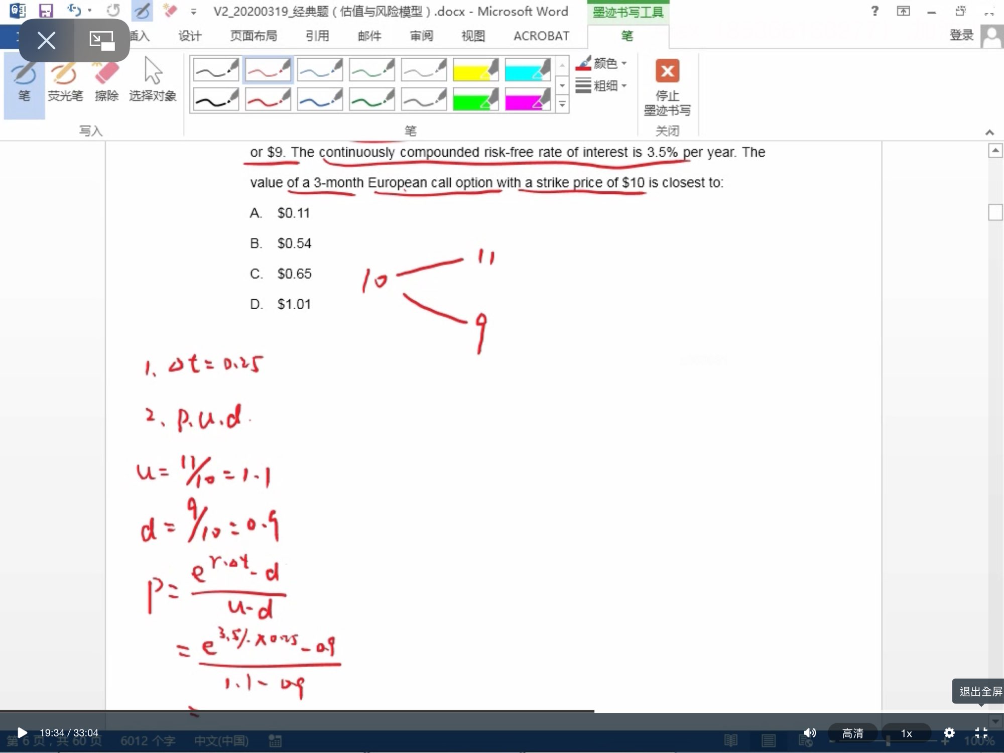老師第六題u和d不是用u=e^sigma開方t嗎?為什麼會11/10?