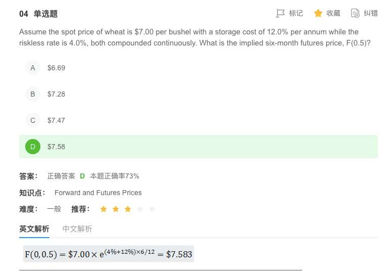 这道题的storage cost为什么放在乘数里面了,课上讲的是和S0放在一起,然后再乘以利率,难道不是(7*1.12)*1.04^0.5?