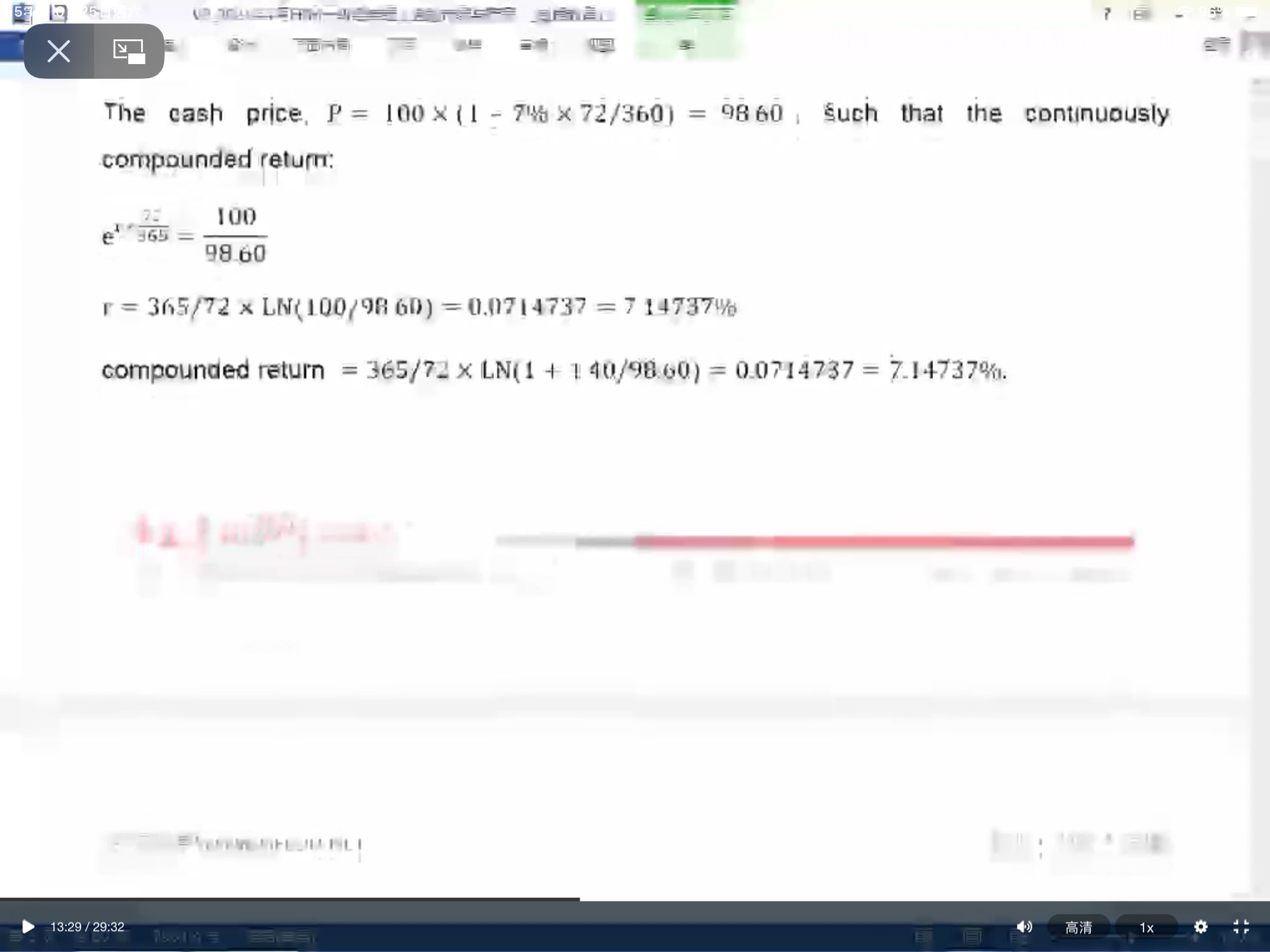 老師第四條這裏e^rx(72/365)=100/98.6是那一條公式?另外這裏的答案有兩個計算方法都不太明白,可以解釋一下嗎?