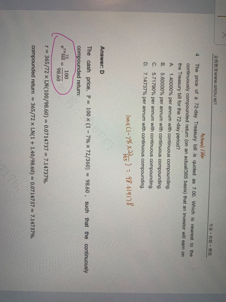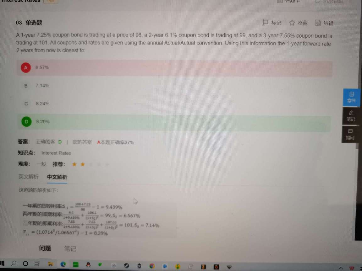 该题中一年期即期利率为什么是这么算的,有点不大理解,这里所用的公式是什么,题干中的98、99、101是期初投资还是期末收到的钱?书上的公式如第二张图所示,我没有想到该用什么公式去解释下面的解析中的方法