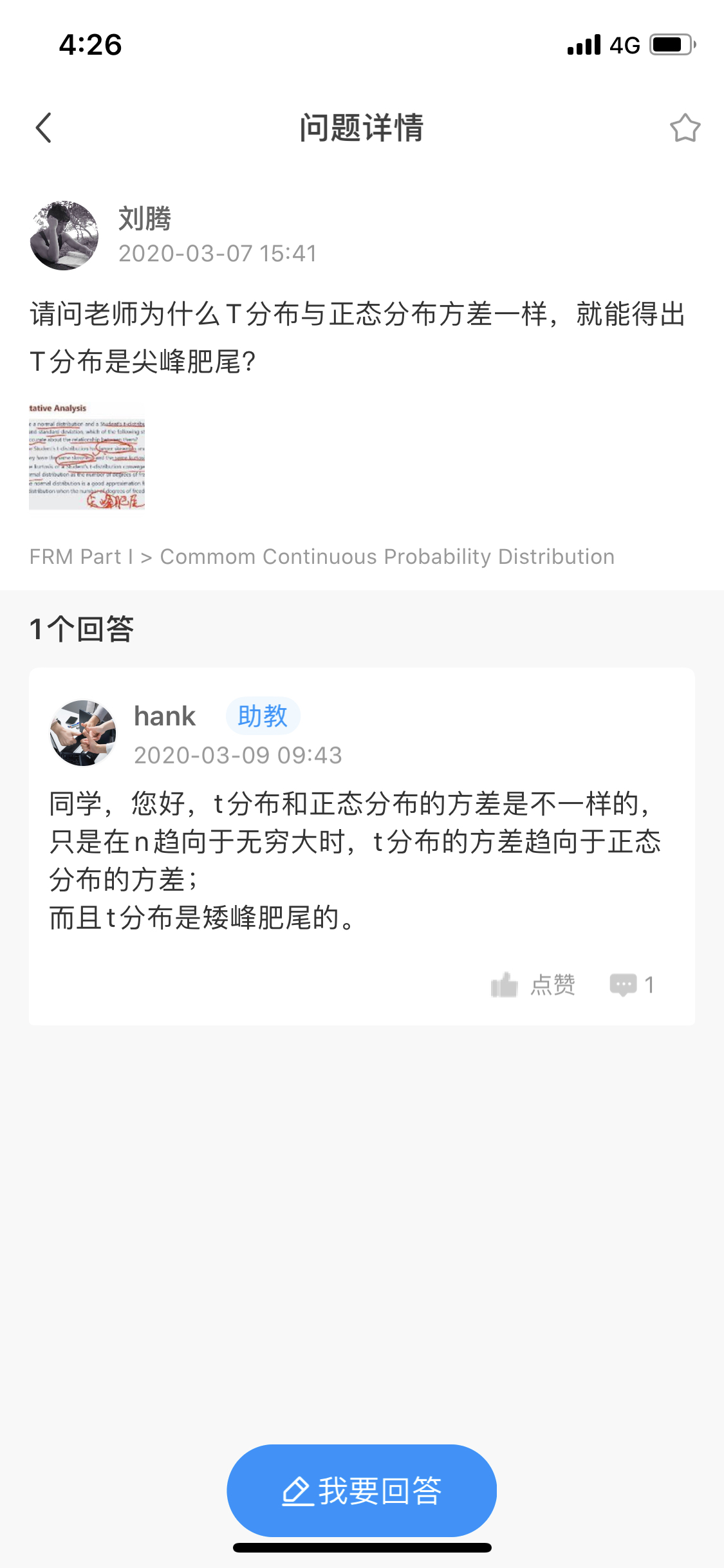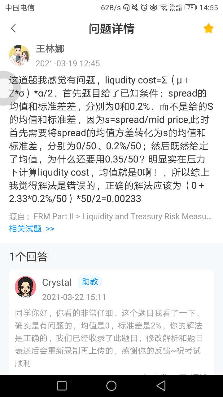 FRM问答包含在线课程、FMR通关课程、FRM试题等所有FRM相关问题,每个问题老师均会在24小时内给出答疑回复哦!