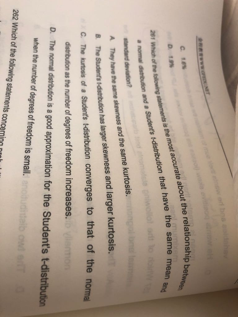 老师261讲解说t分布峰度比正态分布高不对吧?t分布峰度比正态分布低是矮峰吧