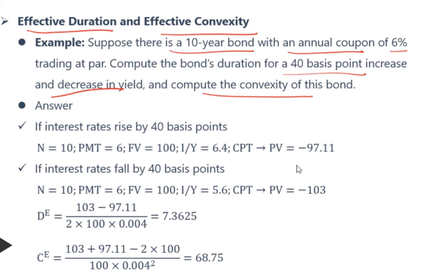 1.这里对冲为什么是D✖️3million呢option的价格呢 D衡量得不是利率对债券的敏感程度嘛 怎么跟option撤上关系了 衡量option与标的资产的关系用的是delta嘛?2.还有算DP deltay的具体数值是前面的负号到底要不要考虑?假设我分析不出卖期权担心的是价格上升。单纯靠公式去推理 怎么退出这个D答案