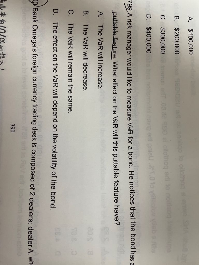 799题该债券有可卖回的权利,那gamma不应该小于0,最终VaR应该更大嘛