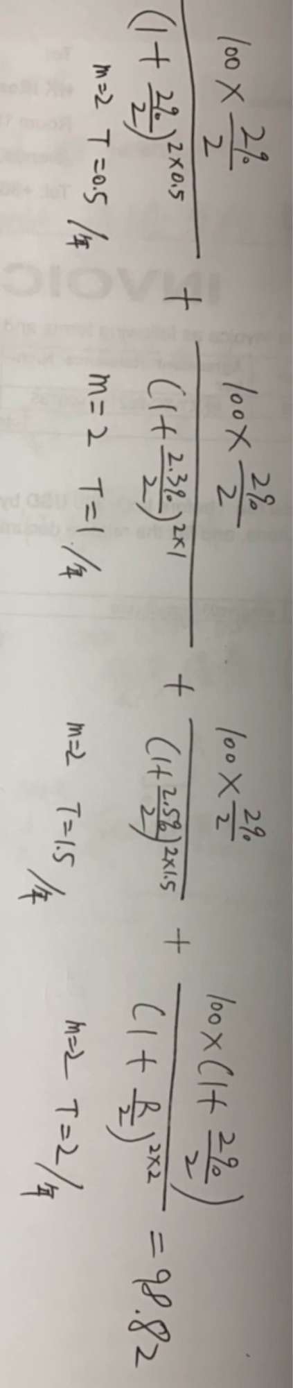PPT里下面的算式是否是像照片中这样展开,如果是的话, 为什么分子没有计复利(算上复利是1点几好几位小数,不是整一), 为什么分母是即期利率一次付清利息但是还要计算复利?