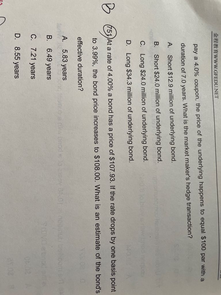 751题effective duration近似于modified duration,所以可直接计算MD?