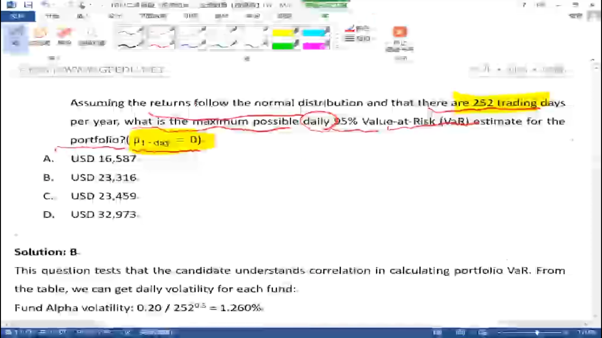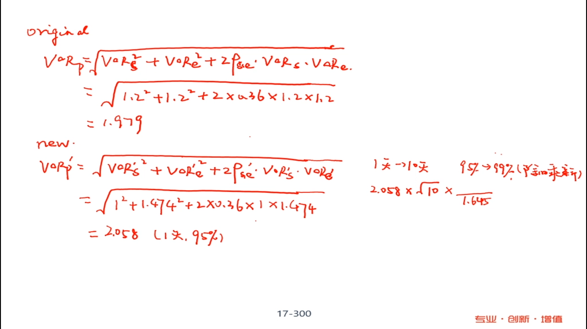 老师,计算VaR时,记得曾讲过要用单尾的z值,这里用95%的VaR计算99%VaR时,除旧乘新用的怎么都是双尾的z值呢?
