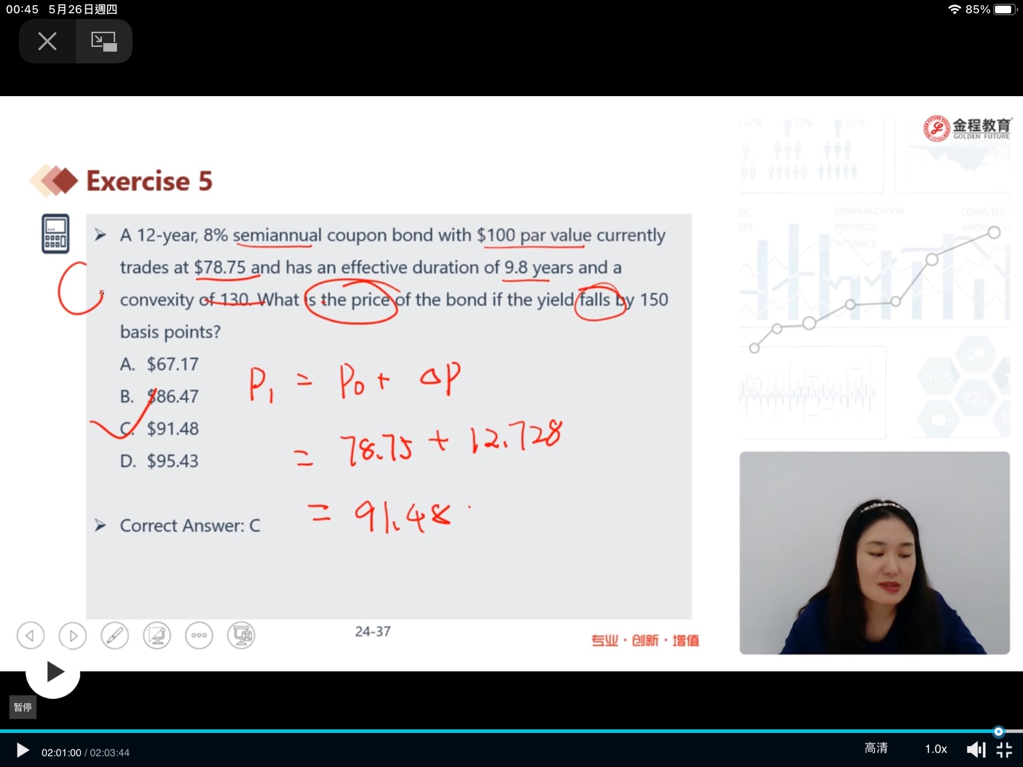 老師這一條是不是因為yield下跌,price上升,所以加12.728,如果這一題題目yield是上升的話,那我是不是應該減12.728?
