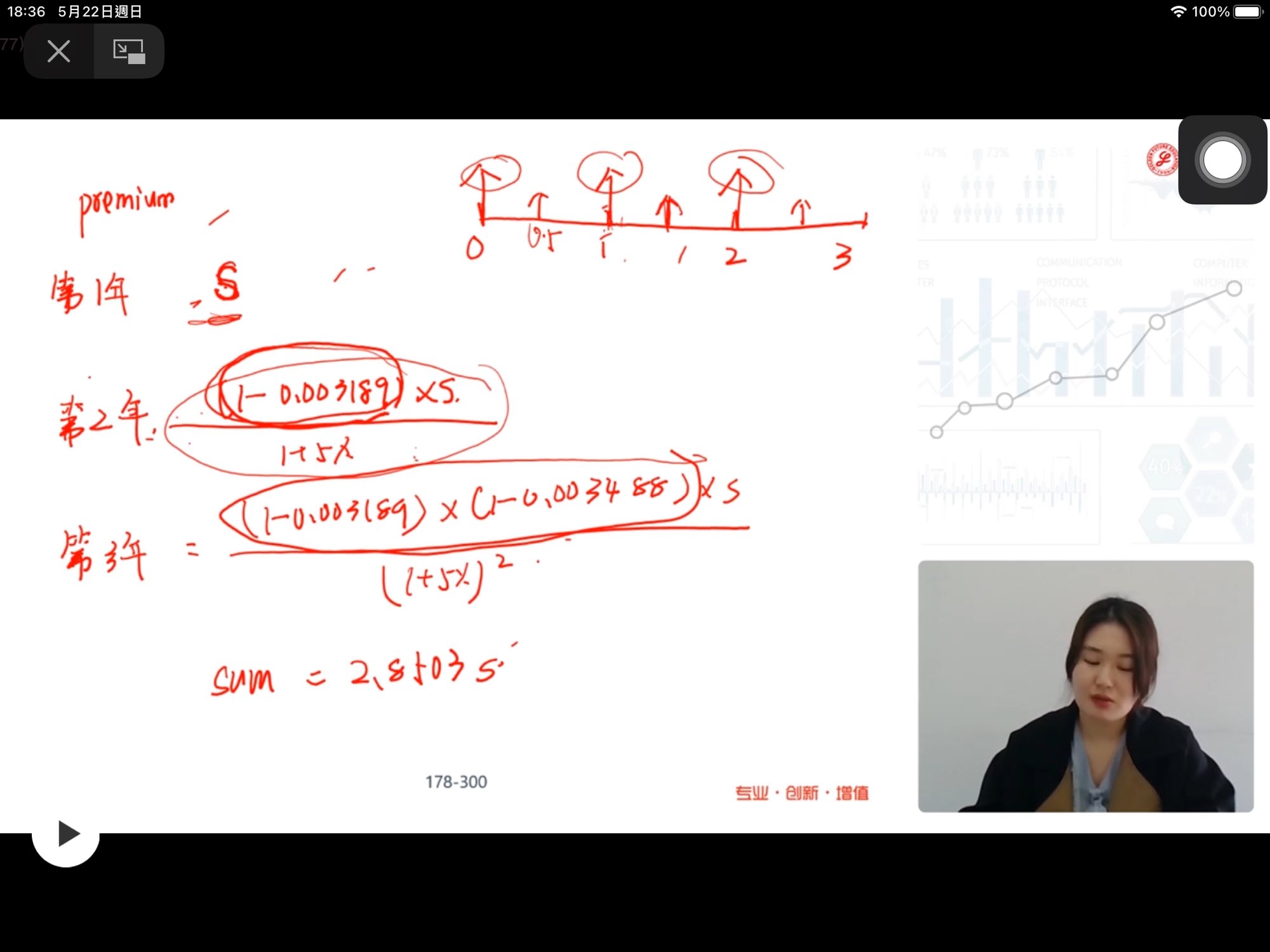 老师,怎么我算出来的麦考利久期是2.727? 用表格给的数据计算:(1*105.77+2*5.48+3*5.15+4*4.8+5*78.79)/200=2.727
