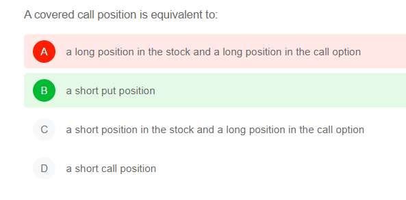 题目没打完...按照18题老师的讲法,covered call position就是long covered call, 等于short put.所以在第一题中,writing covered call等于short covered call,就是long put。为什么讲解视频里是short put?两道题的讲解完全是两个说法呀...