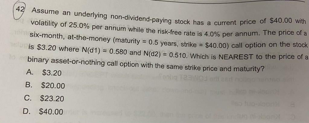 老师对于这题,如果问题换成cash or nothing call,是不是就是ke^-rt(Nd2)?